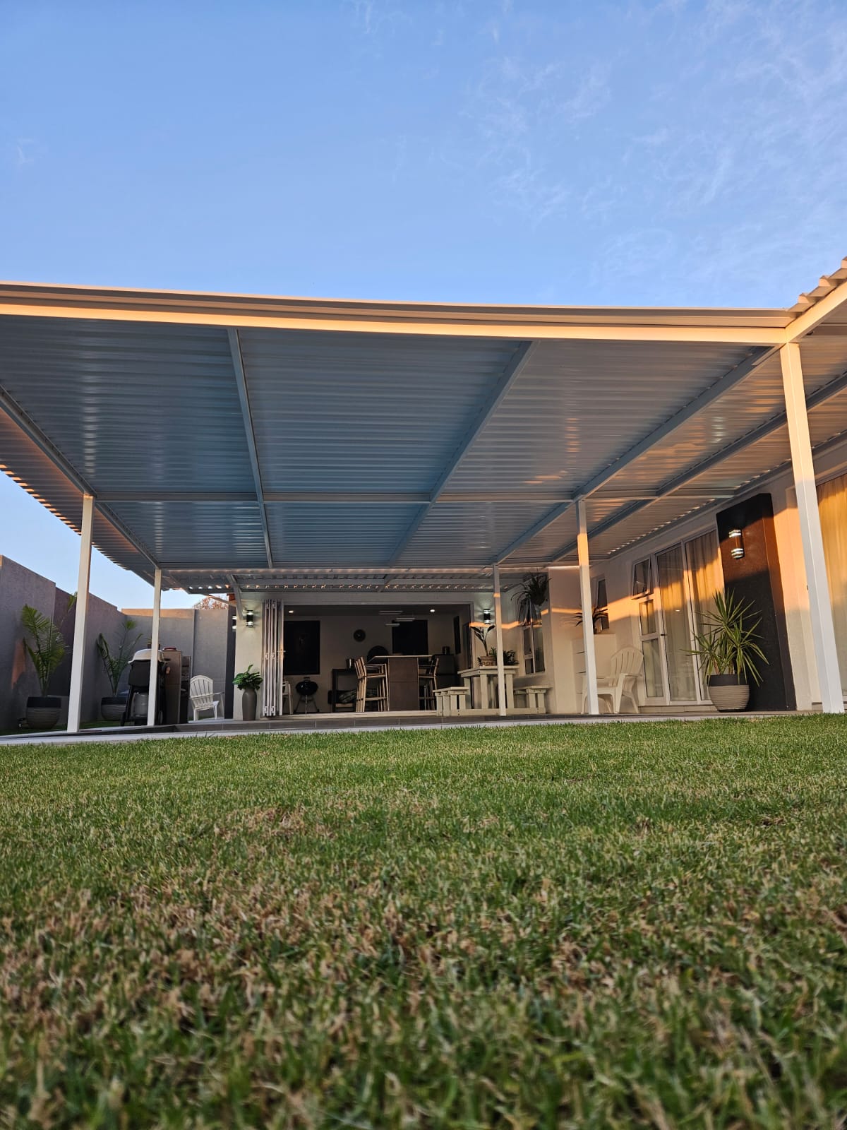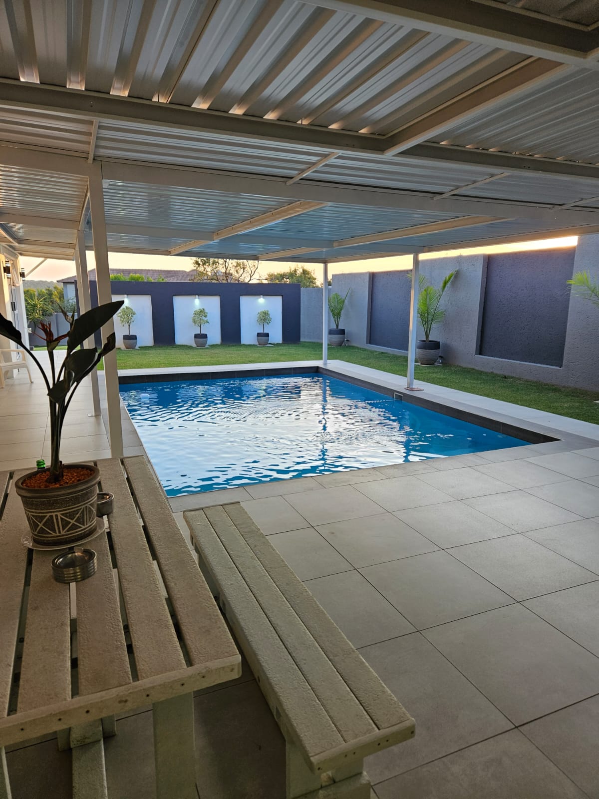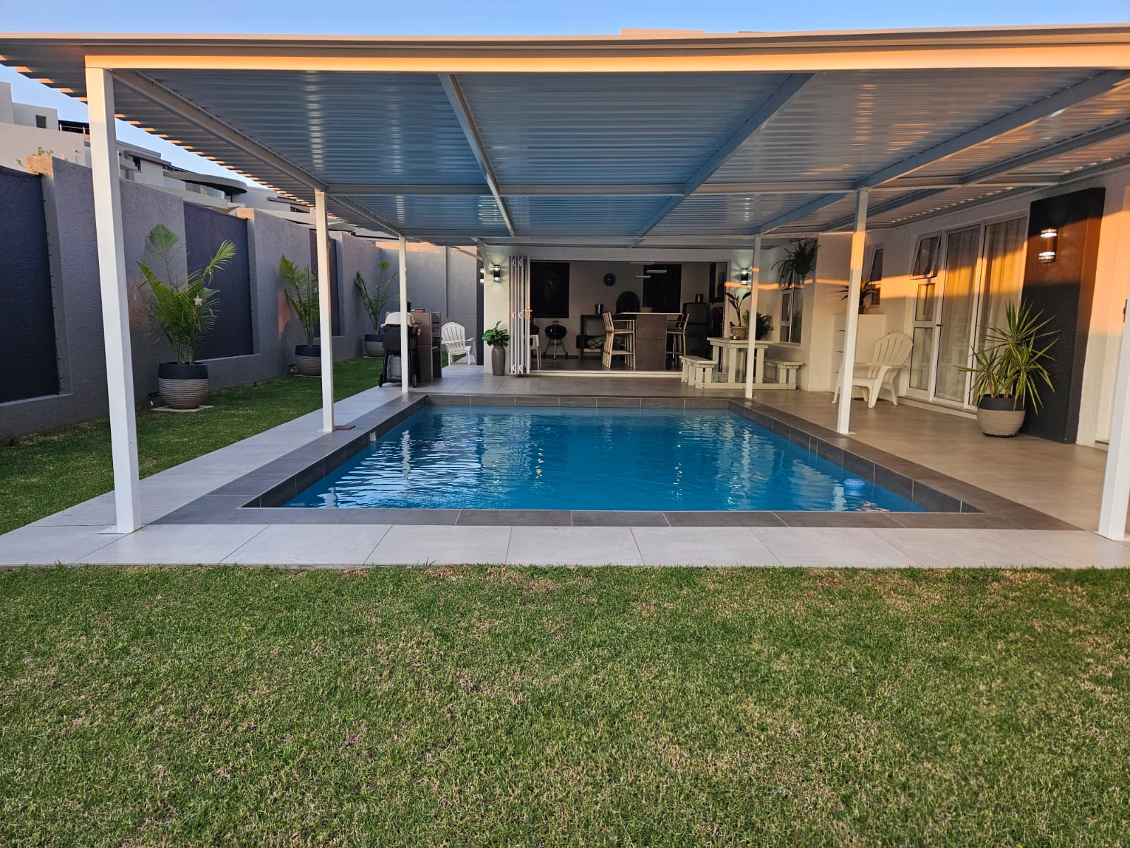 The bar area leads to the patio and under roof swimming pool and braai areas inside and outside..